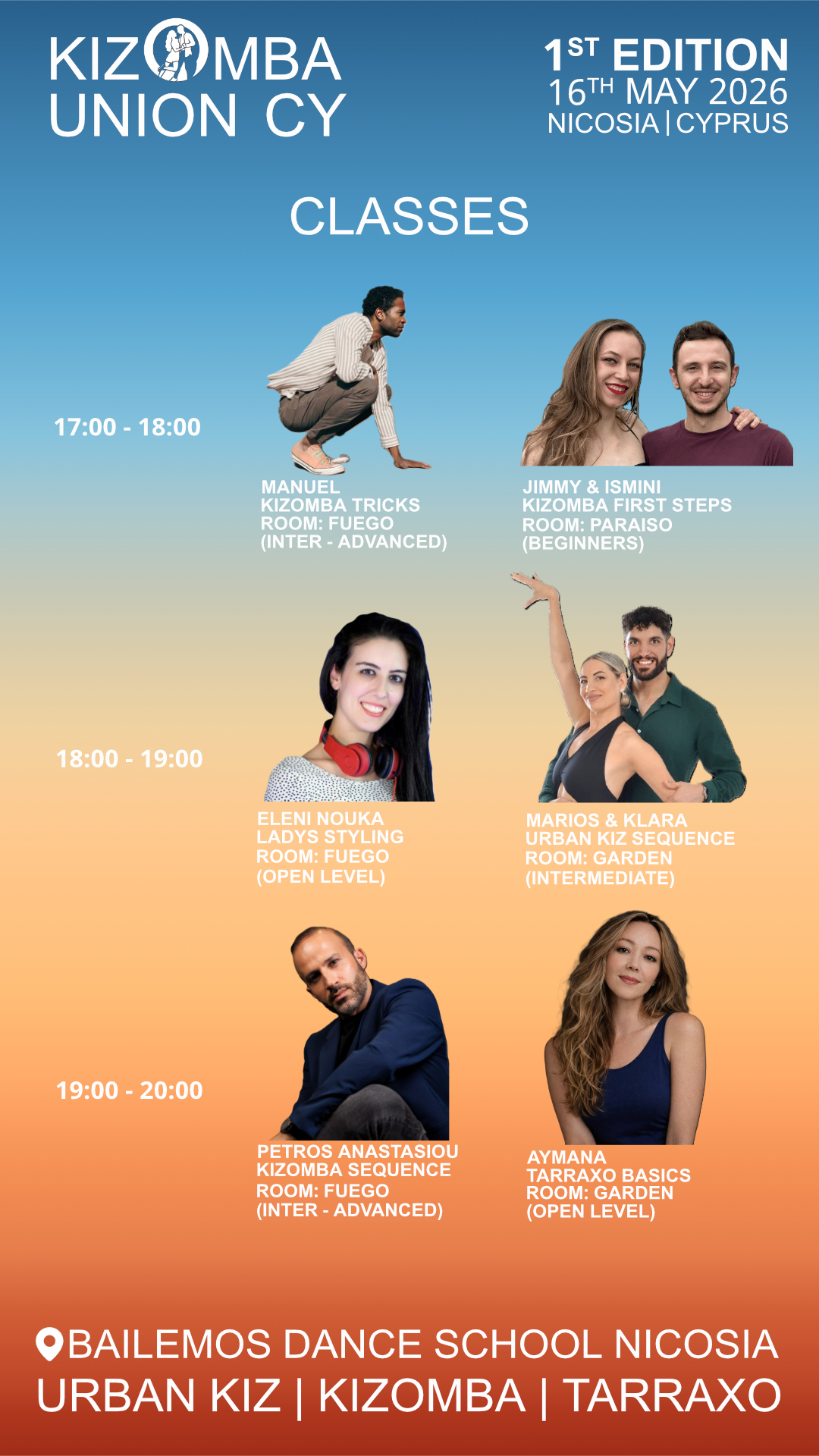 Kizomba Union CY brings together local artists and dancers from all across Cyprus — one afternoon of workshops, one night of social dancing, one community on the floor.
